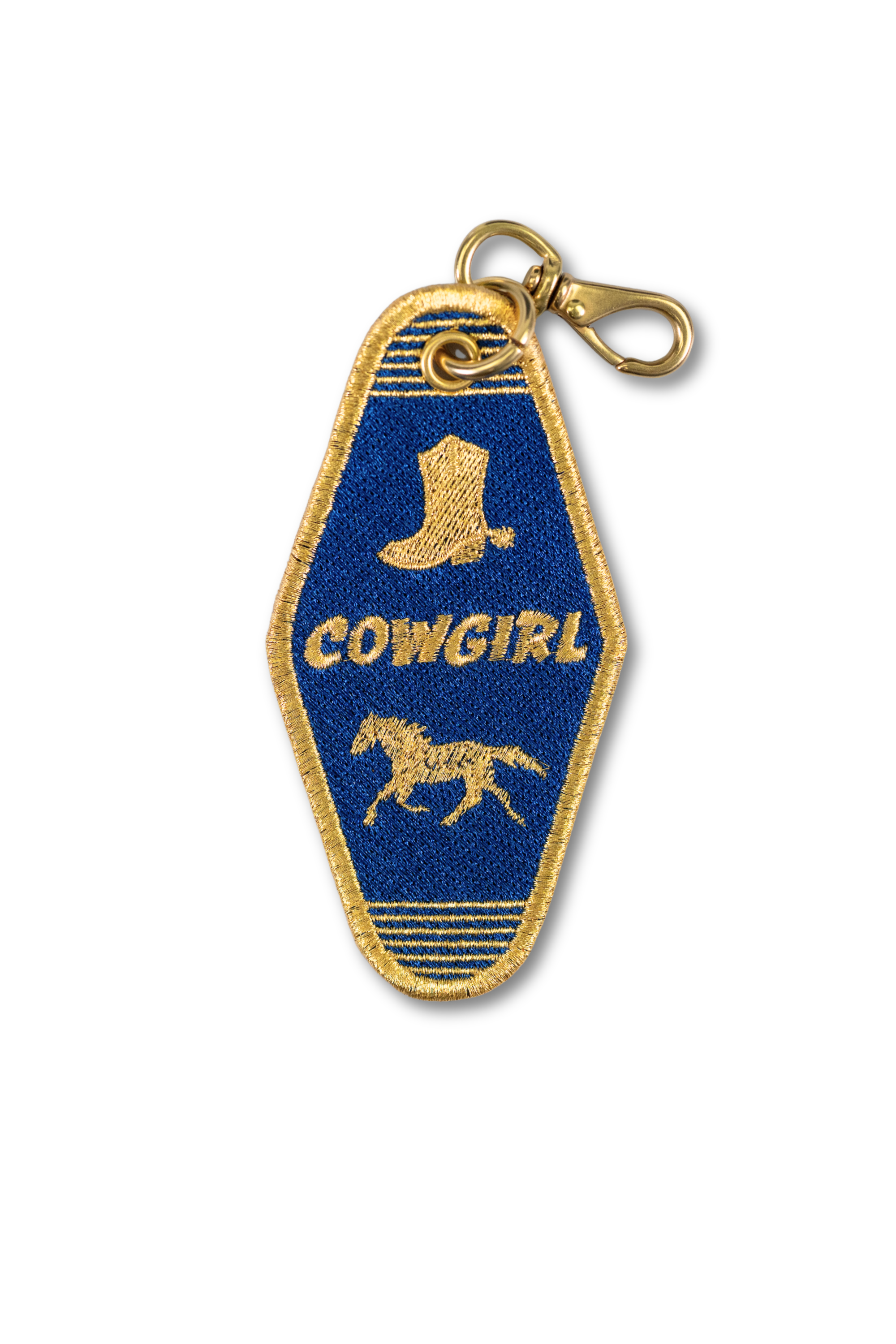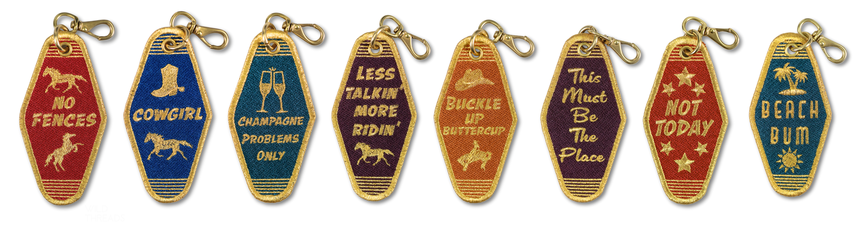 A modern heirloom inspired by the classic hotel key, designed to be collected, styled, and remembered. Meticulously embroidered and finished with solid brass and engraved leather, each charm captures the spirit of Western heritage, fashion culture, and the romance of the road.