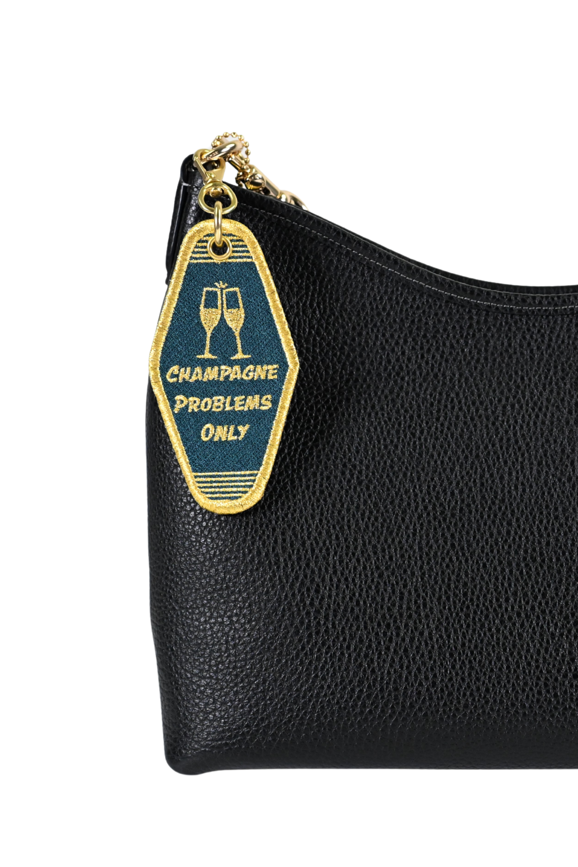 Hand-designed, meticulously embroidered, and expertly constructed in our Charlotte studio, these charms reimagine the classic hotel key as a modern, collectible keepsake. Each piece is finished with weighty solid brass hardware and features thoughtfully composed phrases inspired by Western heritage, fashion culture, and the romance of travel. Embroidered on one side with the back created from engraved leather, they offer a refined balance of texture and storytelling. Style a single charm for a subtle statement or curate a set to create a look that is distinctly your own.